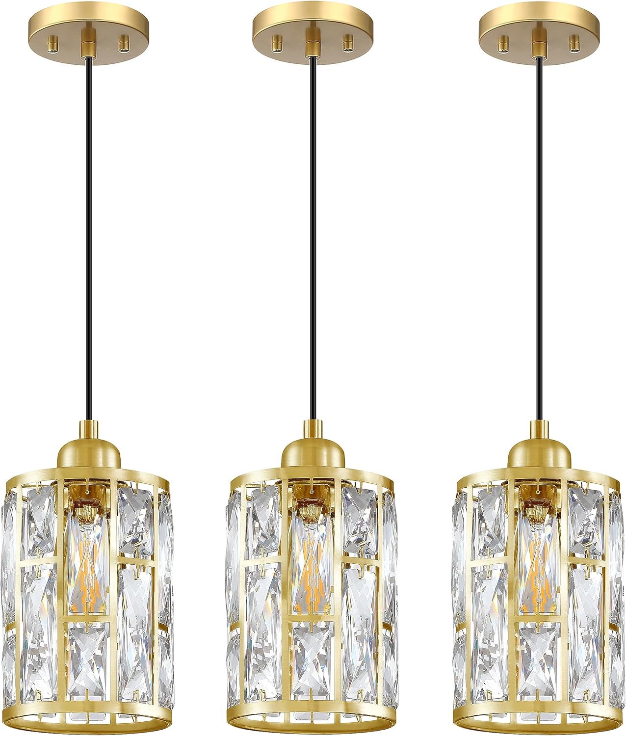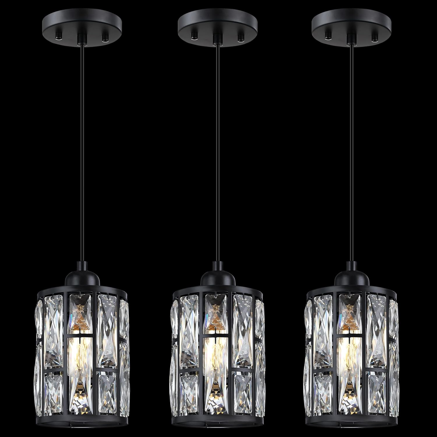 Dolaimi House 3 Pack 1 Light 5.4" Crystal Shade Hanging Kitchen Island Pendant Light Black Finish,Modern Pendant Fixture with Crystal Metal Shade for Bar,Dining Room,Living Room Over Sink