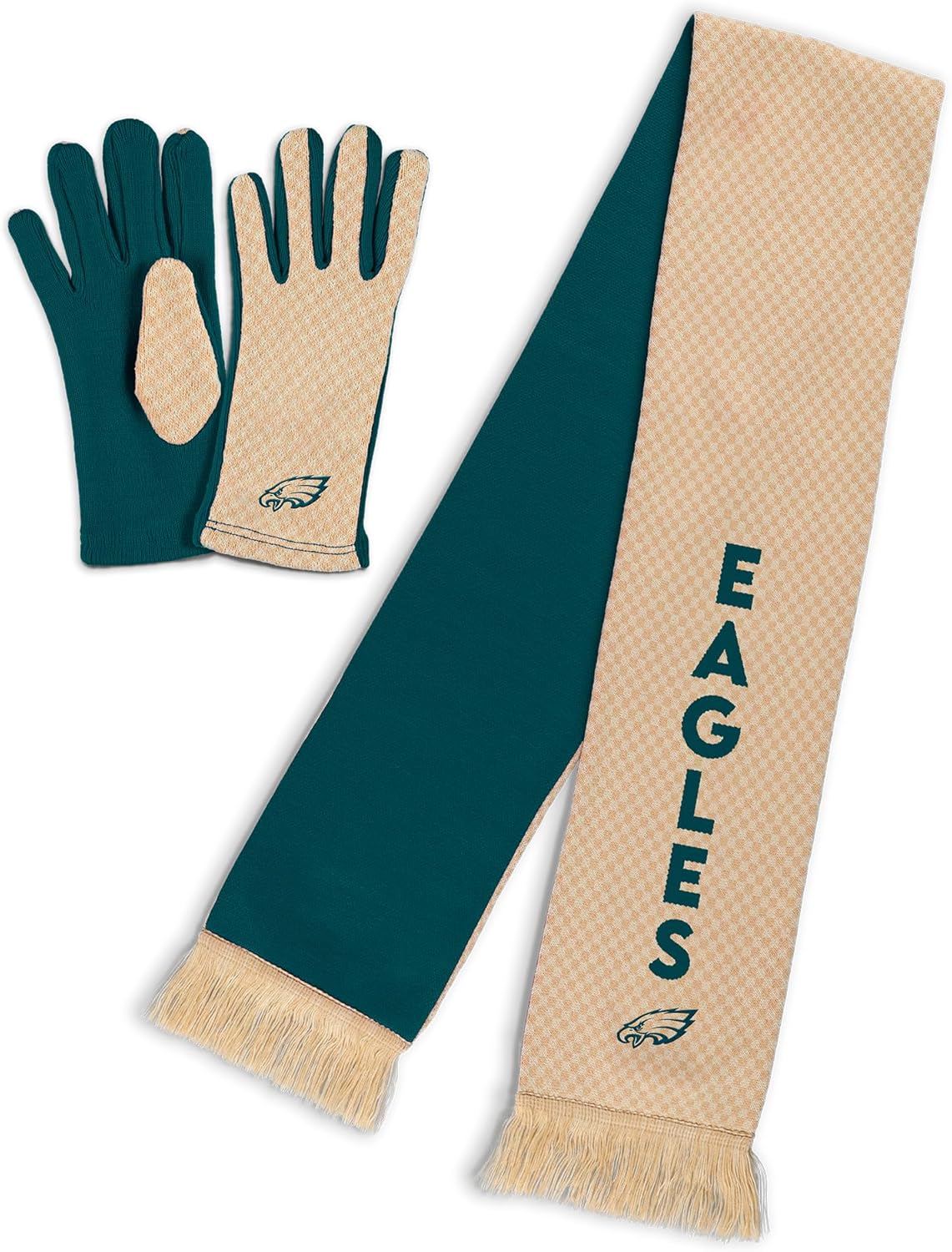 Heat things up when the temperature drops with this team Tonal Microcheck Scarf & Glove Set from WEAR by Erin Andrews. This set includes a cozy scarf and a pair of gloves, adorned with an embroidered and knit team graphics. The tonal microcheck design elevates your fan style while you showcase your unwavering support for your favorite team, whether you're at the stadium or on the go.