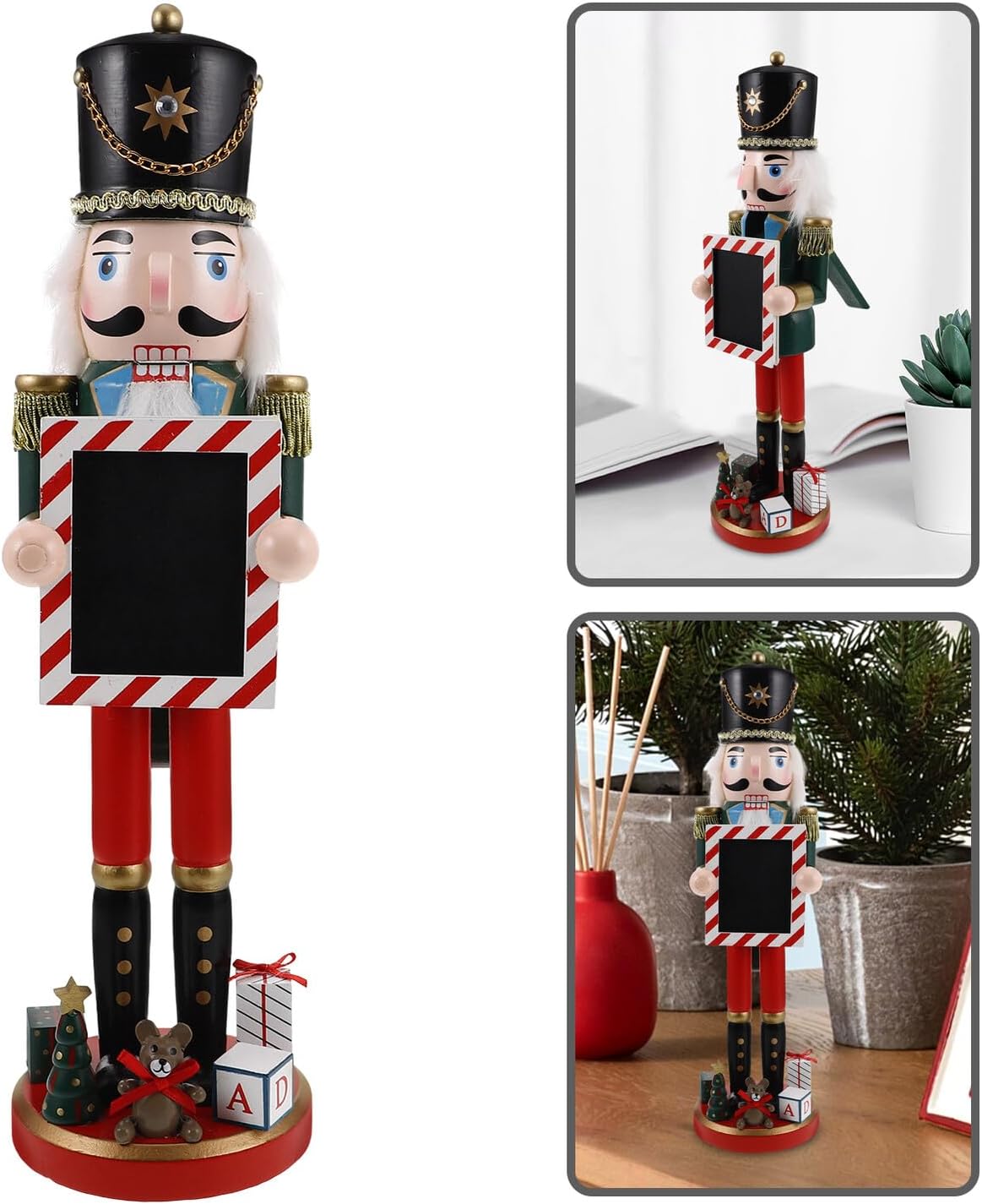 Package Include 1 x nutcracker decor Features -Multifunctional decor: whether used as a desktop ornament, table centerpiece, or shelf decor, this nutcracker adds a festive touch to any space, making it a versatile decoration nutcracker figures soldier - Color: Green -Material:Wood -Enhances holiday atmosphere: this nutcracker figurine enhances the holiday atmosphere of your home, making the season more joyful and memorable nutcrackers figures -Distinctive festive design: the wooden candy gingerbread nutcracker features a distinctive festive design that adds charm and character to your holiday decor nutcracker table decor - Size: 38.50X10.50X10.50cm/15.13X4.13X4.13in -Ideal holiday : with its intricate details and vibrant colors, this nutcracker makes an ideal holiday , for spreading festive cheer -Product Info:Nutcracker soldier decoration - uniqueness: each nutcracker is , ensuring that every piece is unique and reflects exceptional craftsmanship traditional nutcrackerGoods Informationlarge nutcracker soldier sign Celebrate the holidays with this charming wooden candy nutcracker.nutcracker figurines Ideal for use as a desktop ornament or table centerpiece, this nutcracker adds a festive touch to your home decor.walnut soldier nutcracker Whether placed on a shelf, mantel, or as part of a holiday display, this nutcracker brings a touch of tradition and joy to your festive celebrations.wooden nutcracker soldier decorations Its detailed craftsmanship and classic design make it a addition to your Christmas decorations